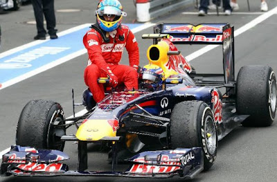 | One of the sweetest photos I've seen from F1 Mark Webber giving Alonso a ride.... |